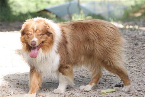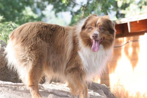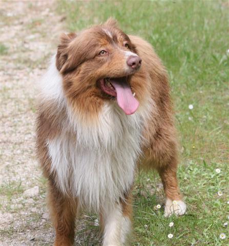 Bibucciu est né à la maison le 12 décembre 2006. Il est issu du mariage de Sequanna et Vic. Vous le verrez d'ailleurs chiot en cliquant sur les liens suivant : Bibucciu 1 , Bibucciu 2 , Bibucciu 3 , Bibucciu 4 , Bibucciu 5 Il s'agit d'un chien berger australien rouge tricolore âgé de deux ans et demi.