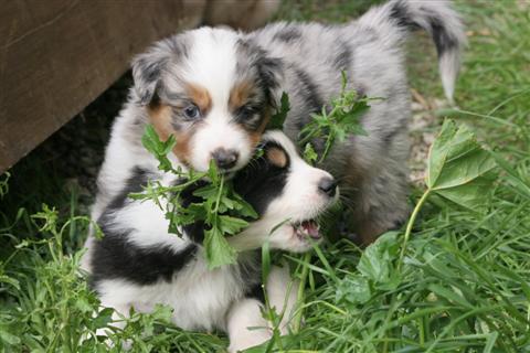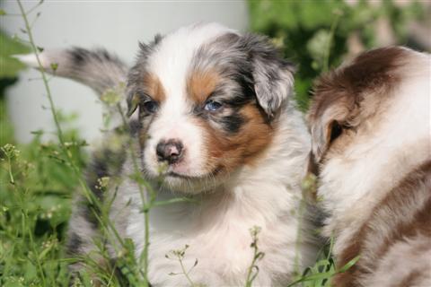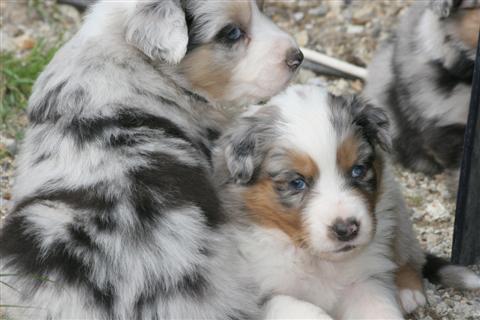 LES AUTRES CHIOTS DE LA PORTEE RETOUR A L'ACCUEIL DE BERGERS AUSTRALIENS