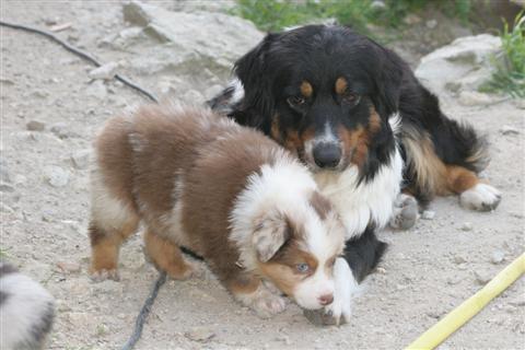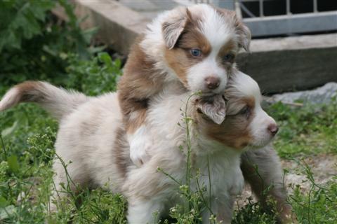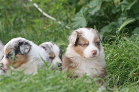 LES AUTRES CHIOTS DE LA PORTEE RETOUR A L'ACCUEIL DE BERGERS AUSTRALIENS