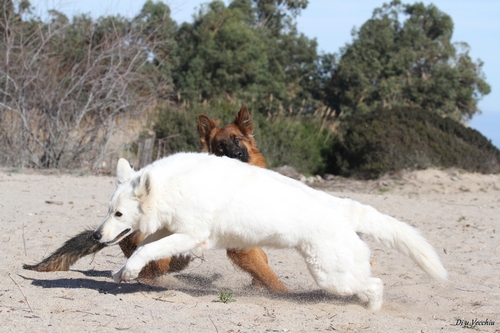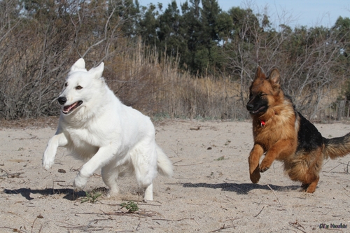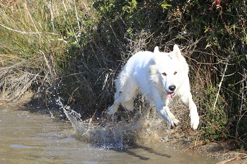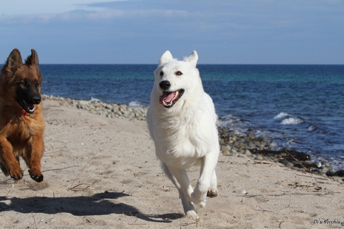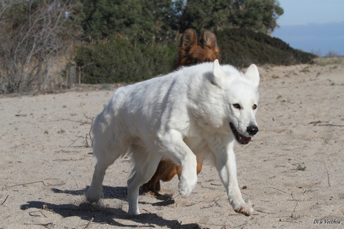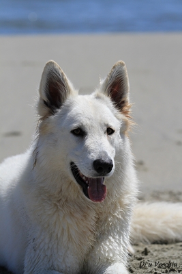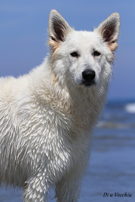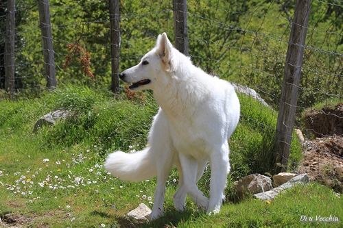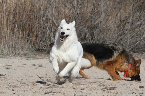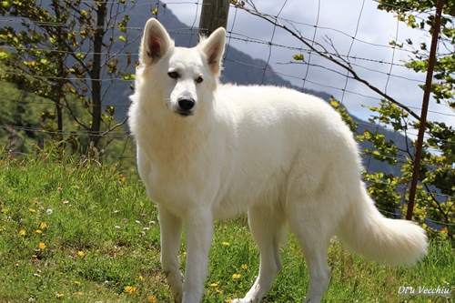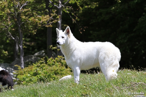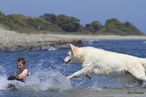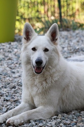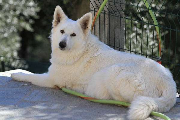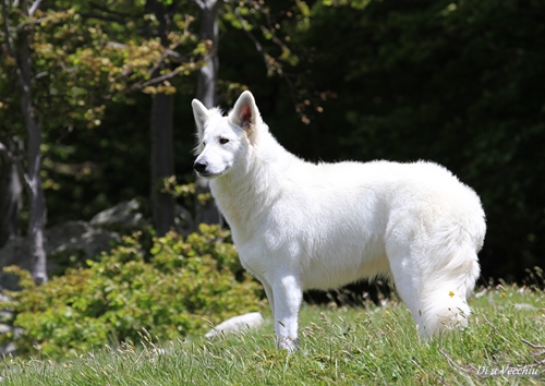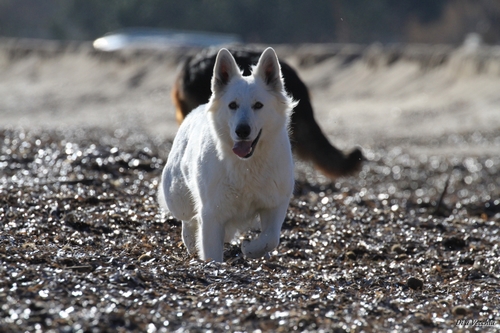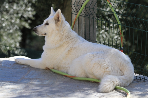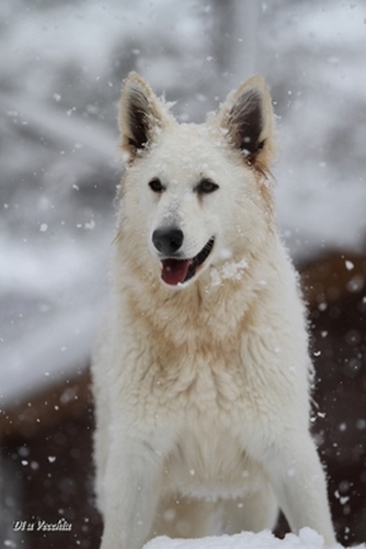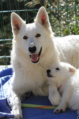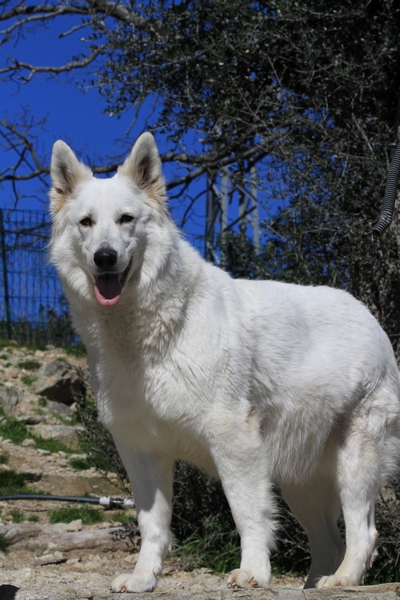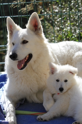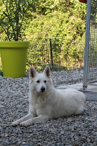 Night est née ici. Elle est un des deux bébés de notre première portée de berger blanc suisse. Elle est née en second, difficilement, dans la voiture devant le cabinet du vétérinaire à 3 heures du matin d'où son nom. Après cette entrée fracassante dans le monde, elle ne pouvait que rester ici ;) Depuis, elle nous comble tous les jours par son côté attachant. Son seul défaut... avoir du mal à rester blanche mais elle a une vie au grand air où les tentations sont nombreuses ;) Quelques photos d'elle petite ICI ! |